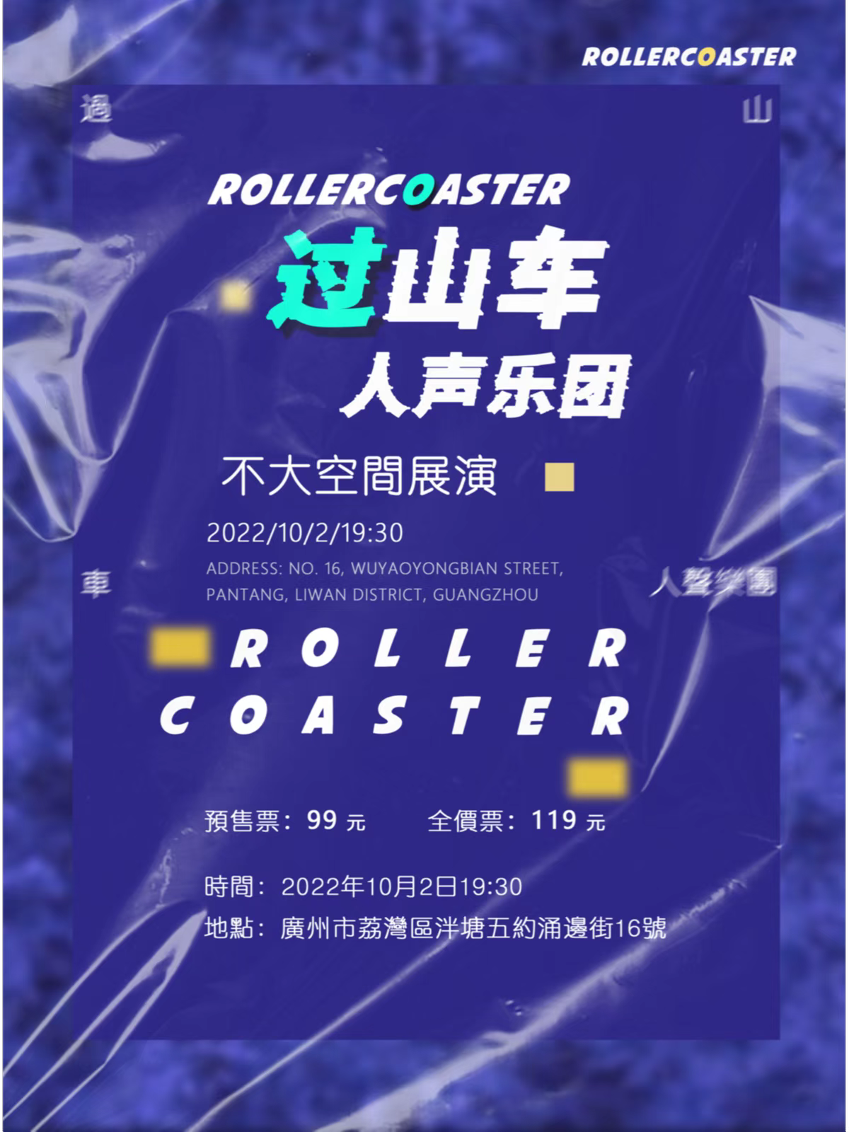 2022.10.2【Rc过山车人声乐团展演】 演出 9月21日 bernsine 取消关注 关注 私信 时间:10月2日19:30 地址:广东省广州市荔湾区不大空间live house 购票链接:点击购票 只有80个座位! 只有80个座位! 先到先得吖!!! Rc过山车人声乐团 西因酱 22年7月28日 喜欢:0 浏览:54 原文连接