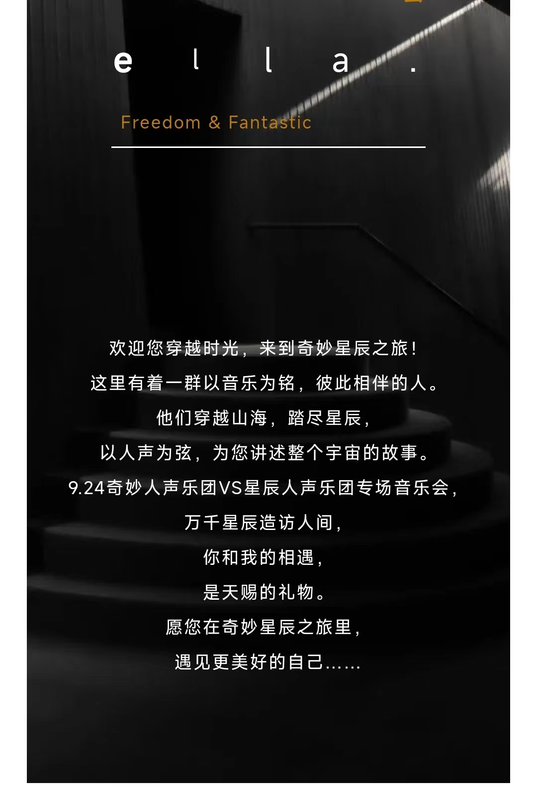 2022.9.24【”奇妙星辰之旅“阿卡贝拉音乐会】 演出 9月10日 bernsine 取消关注 关注 私信 演出时长:90分钟 演出类别:阿卡贝拉音乐会 演出时间:2022年9月24日(周六)下午15:00 演出票价:180/150/120元 演出地点:上海市虹许路731号4号楼 THE BOXX 城市乐园 原文连接