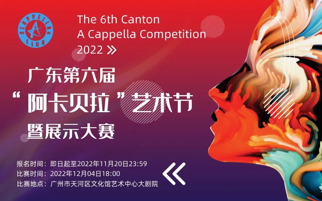 2022.12.4【“2022广东第六届阿卡贝拉艺术节暨展示大赛”】 赛事 9月25日 bernsine 取消关注 关注 私信 比赛时间:2022年12月4日18:00 比赛地点:广州市天河区文化馆艺术中心大剧院(汇彩北路8号) 原文连接